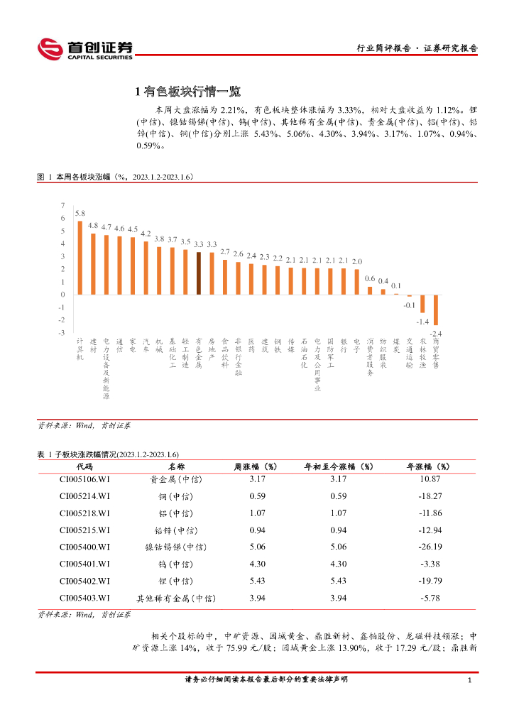 首创证券:有色行业周报:美联储处于加息尾声,继续看多黄金.pdf
