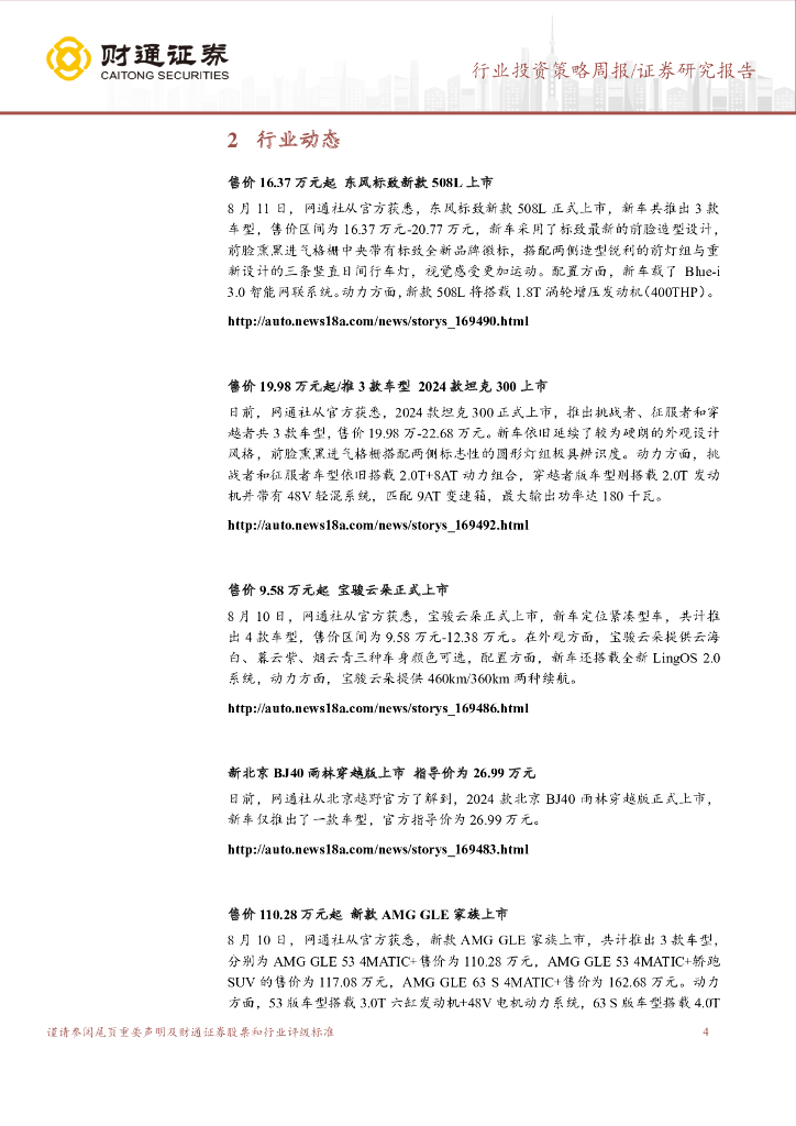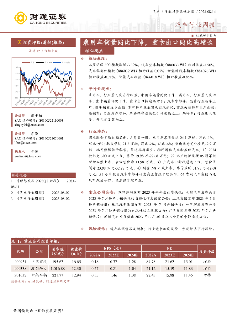 财通证券:汽车行业周报:乘用车销量同比下降,重卡出口同比高增长.pdf