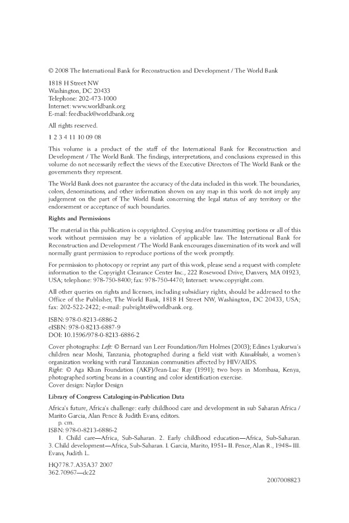 世界银行:发展方向报告-非洲的未来,非洲的挑战:撒哈拉以南非洲的幼儿保育与发展(英文版).pdf