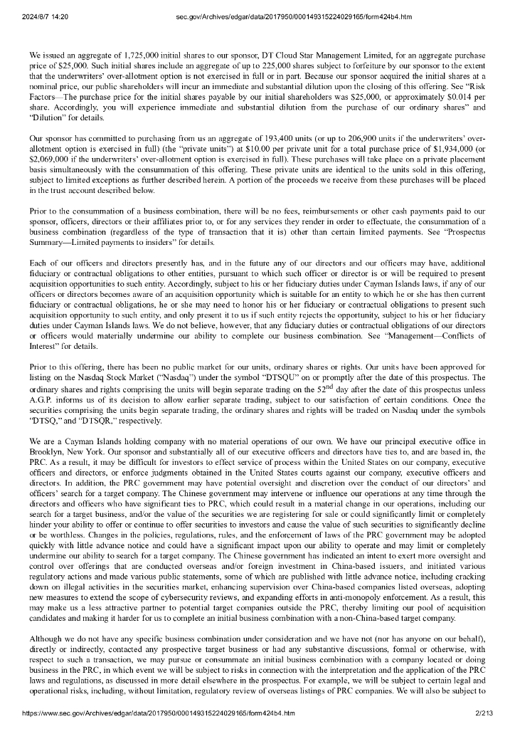 DT Cloud Star Acquisition Corporation美股纳斯达克IPO上市招股说明书.pdf