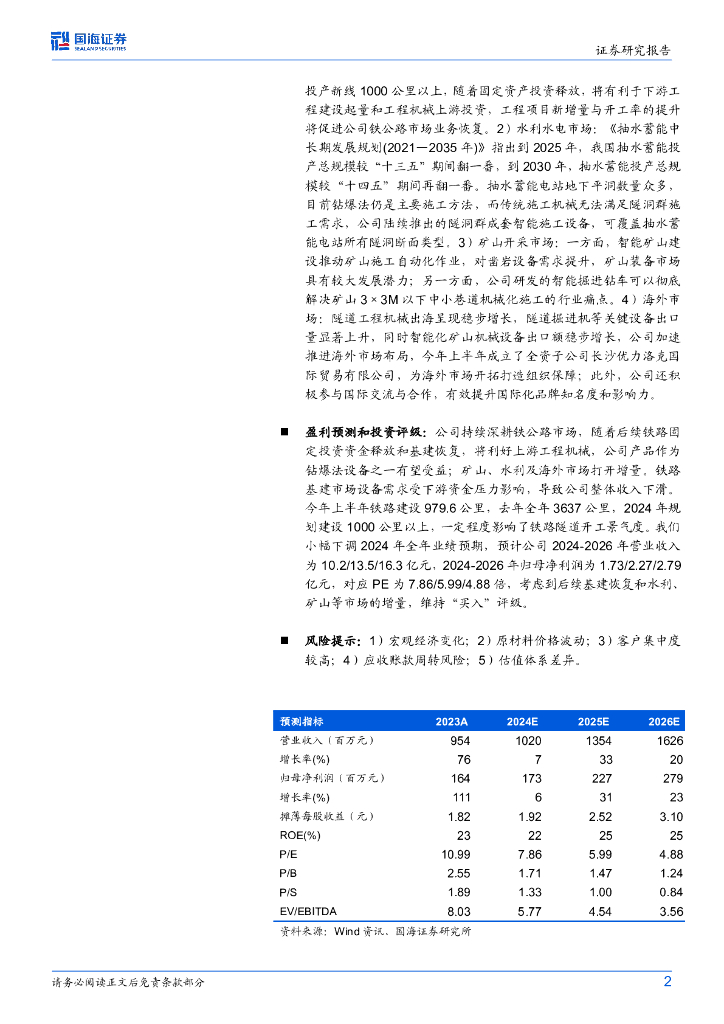 国海证券:五新隧装(835174)-2024年半年报点评:2024H1盈利能力提升,水利水电、矿山等增量市场取得突破.pdf