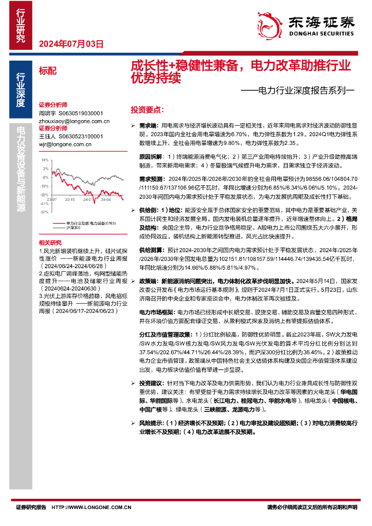 东海证券:电力行业深度报告系列一:成长性+稳健性兼备,电力改革助推行业优势持续.pdf