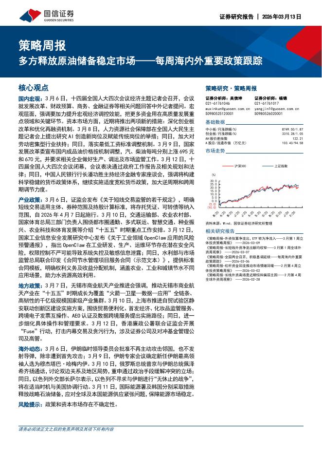 国信证券:每周海内外重要政策跟踪:多方释放原油储备稳定市场-260313.pdf
