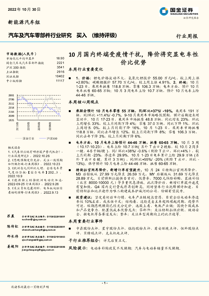 国金证券:汽车及汽车零部件行业研究:10月国内终端受疫情干扰,降价将突显电车性价比优势.pdf