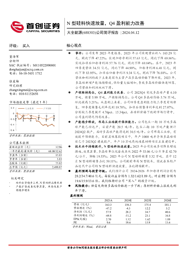 首创证券:大全能源(688303)-公司简评报告:N型硅料快速放量,Q4盈利能力改善.pdf