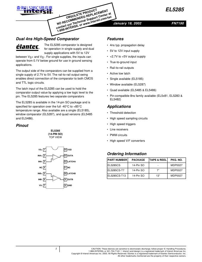 NATIONAL SEMICONDUCTOR - May 27, 2008 DS15BA101 1.5 Gbps Differential Buffer with Adjustable Output Voltage General 说明书