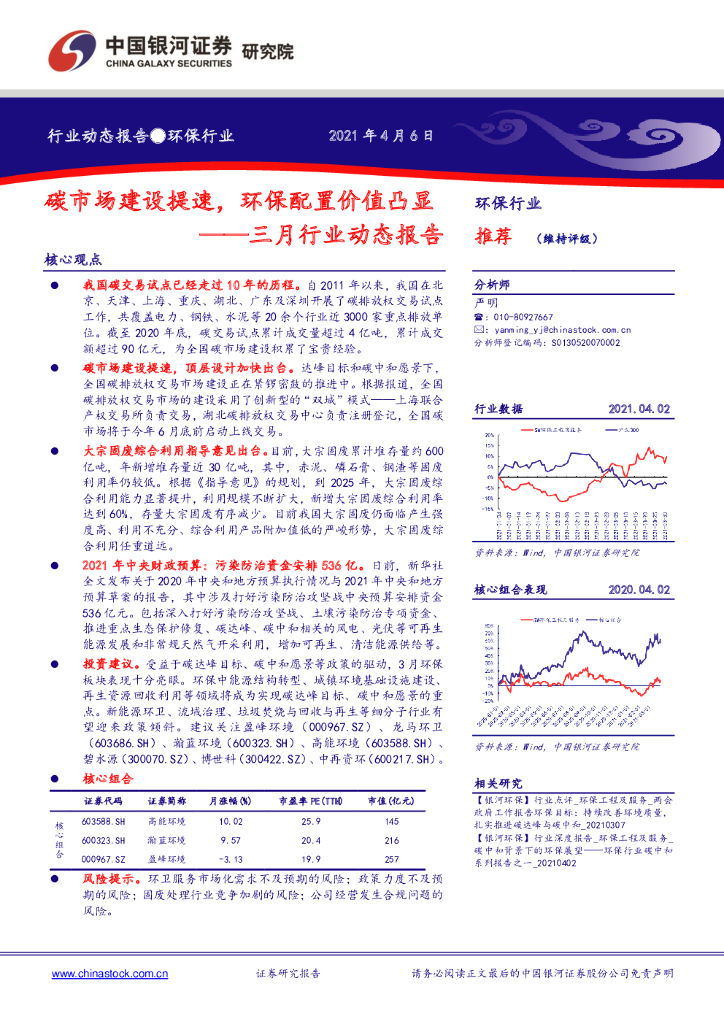 中国银河:环保三月行业动态报告:碳市场建设提速,环保配置价值凸显.pdf