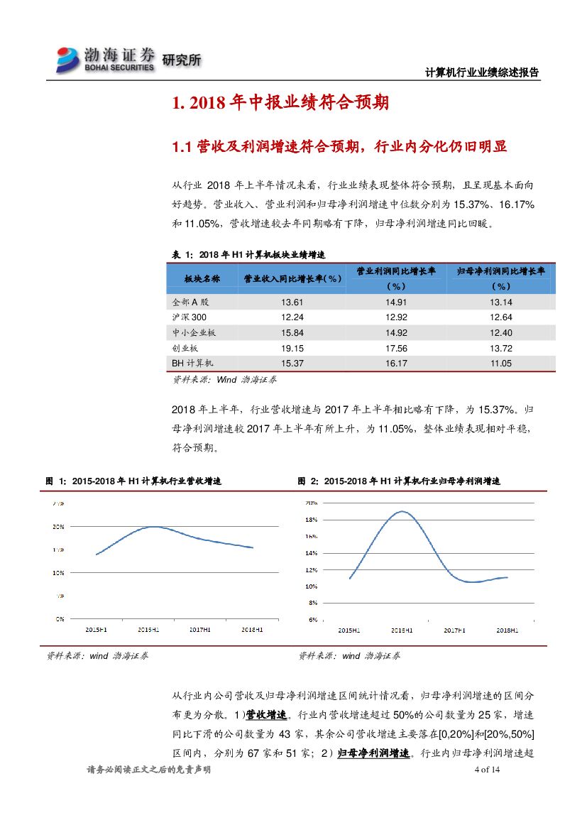 渤海证券:计算机行业2018年半年报业绩综述:业绩符合预期,关注工业互联网、云计算.pdf