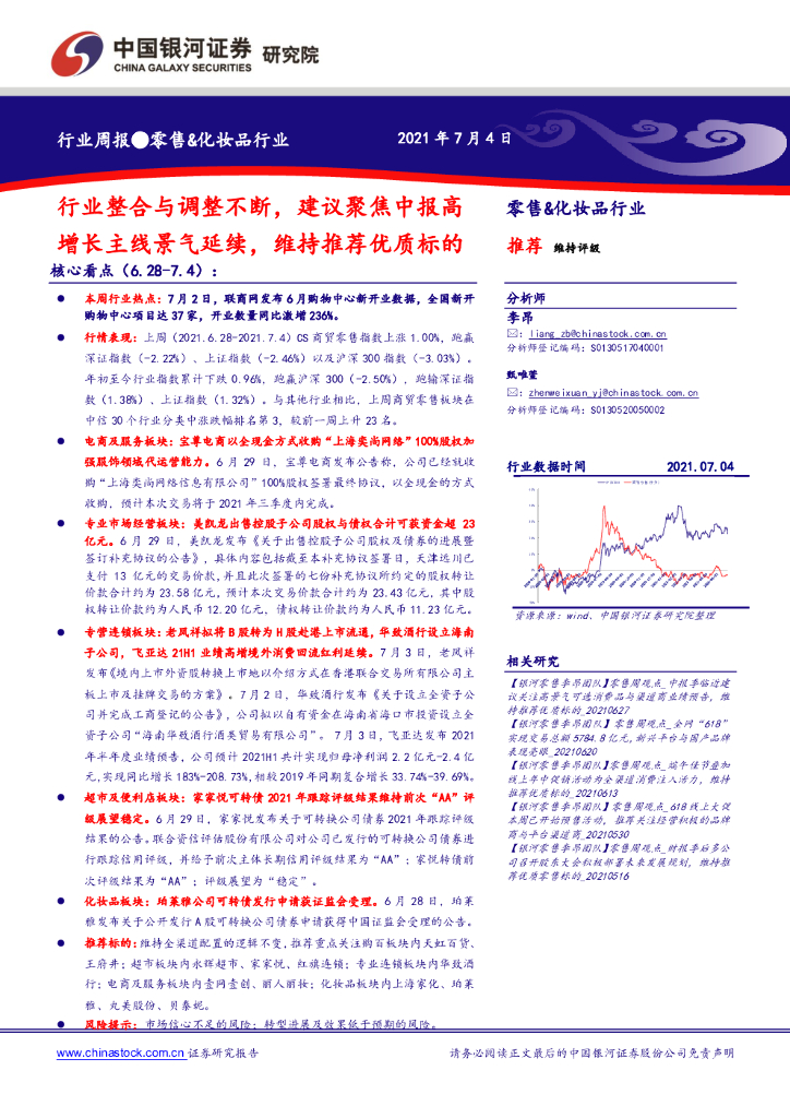 中国银河:零售&化妆品行业周报:行业整合与调整不断,建议聚焦中报高增长主线景气延续,维持推荐优质标的.pdf