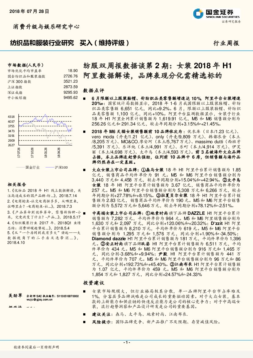 国金证券:纺服双周报数据谈第2期:女装2018年H1阿里数据解读,品牌表现分化需精选标的.pdf