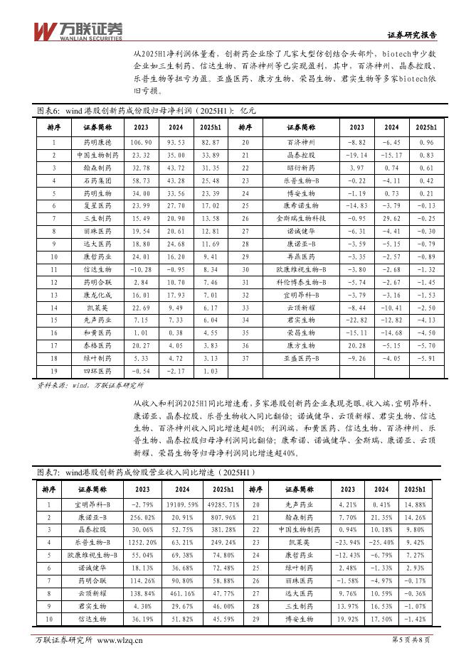 万联证券:生物制品行业跟踪报告:2025H1:港股创新药业绩向好,BD和商业化驱动资产重估.pdf