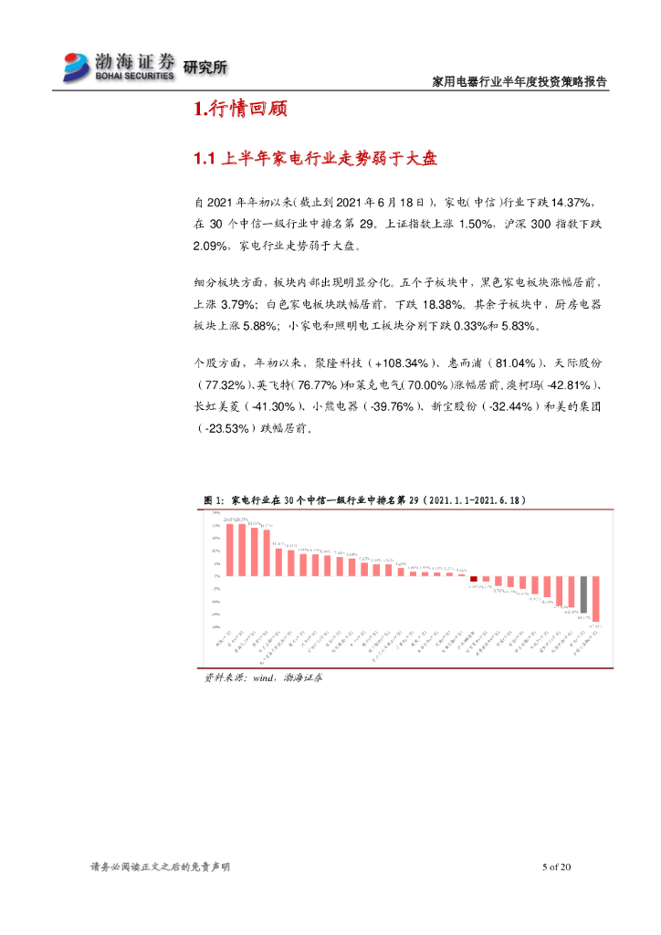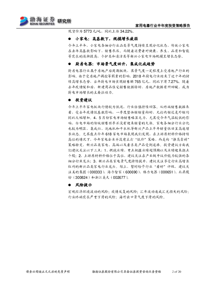 渤海证券:家电行业2021年半年度投资策略报告:聚焦高景气度板块,关注细分行业龙头.pdf