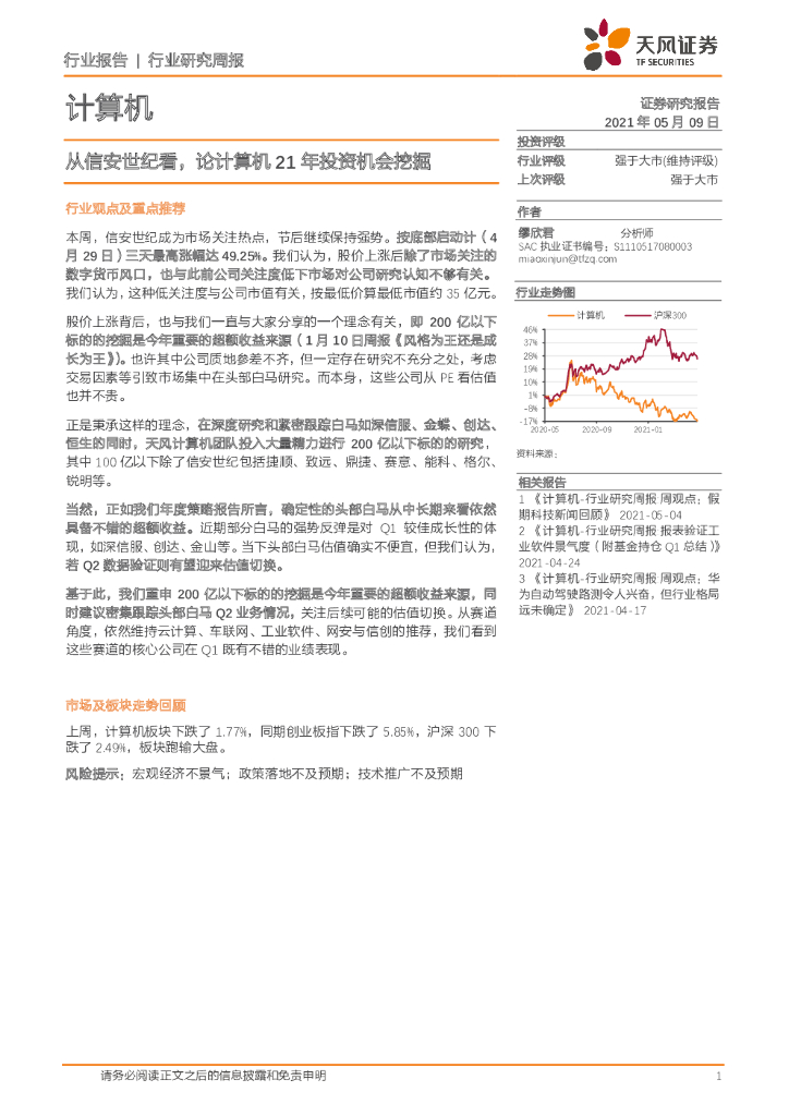 天风证券:计算机行业研究周报:从信安世纪看,论计算机21年投资机会挖掘.pdf