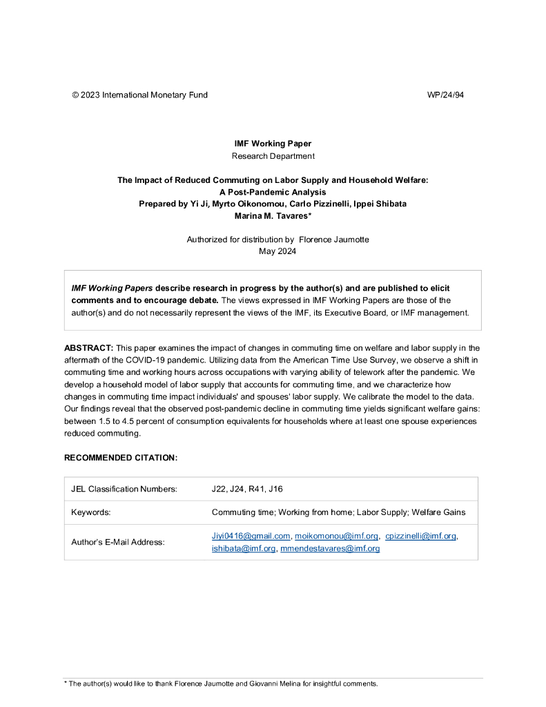 国际货币基金组织:2024通勤减少对劳动力供应和家庭福利的影响:疫情后的分析报告(英文版).pdf