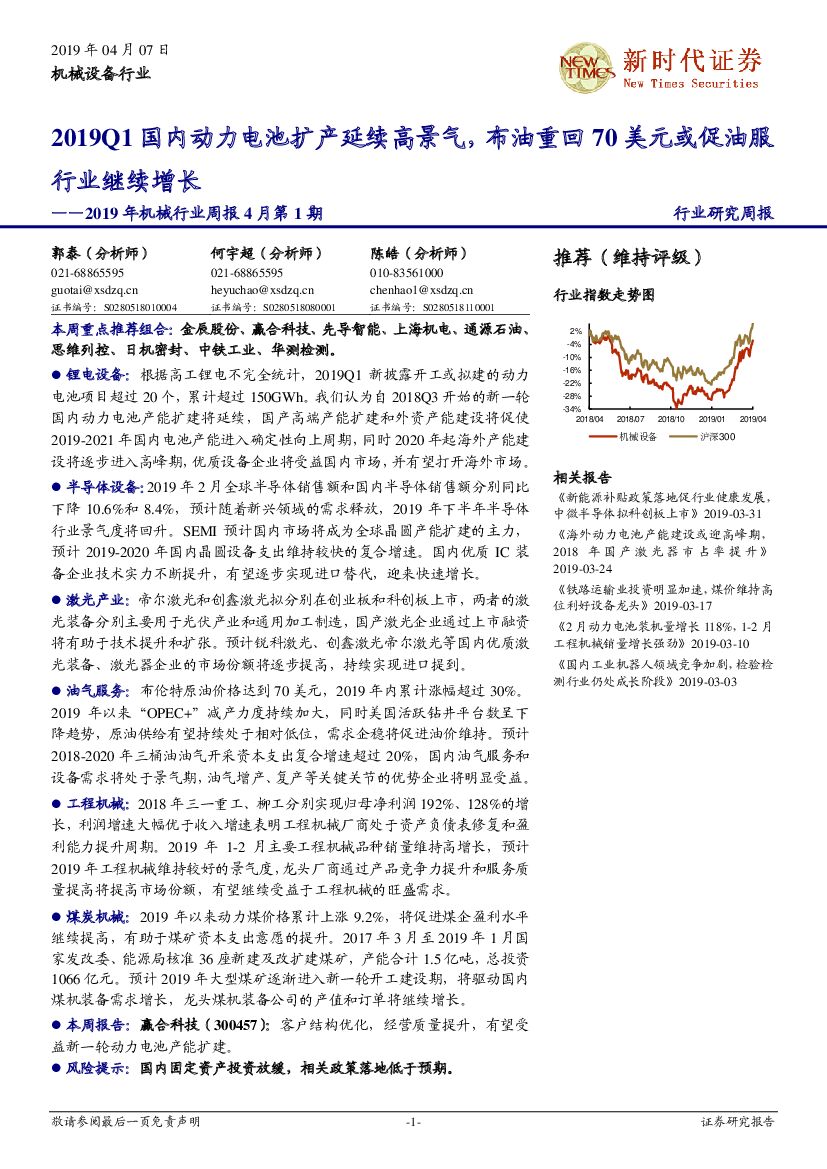新时代证券:2019年机械行业周报4月第1期:2019Q1国内动力电池扩产延续高景气,布油重回70美元或促油服行业继续增长.pdf