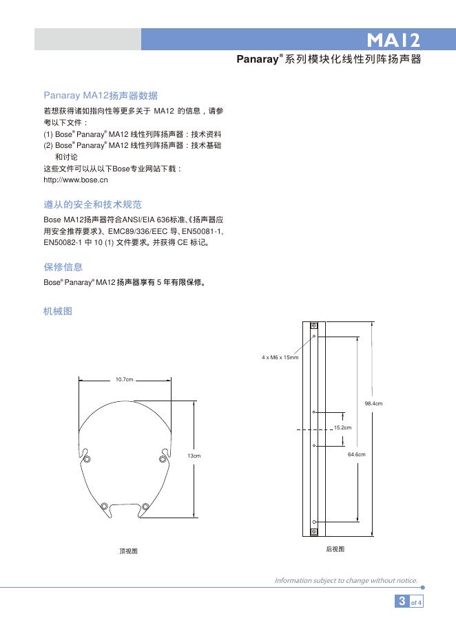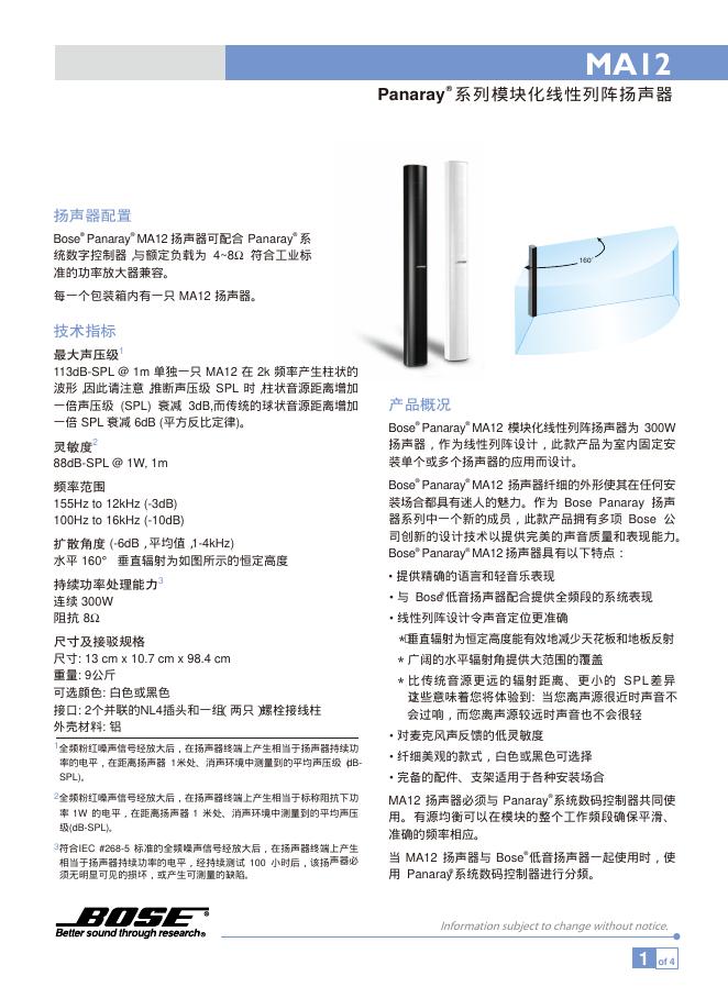 Bose Panaray MA12 扬声器 用户手册.pdf