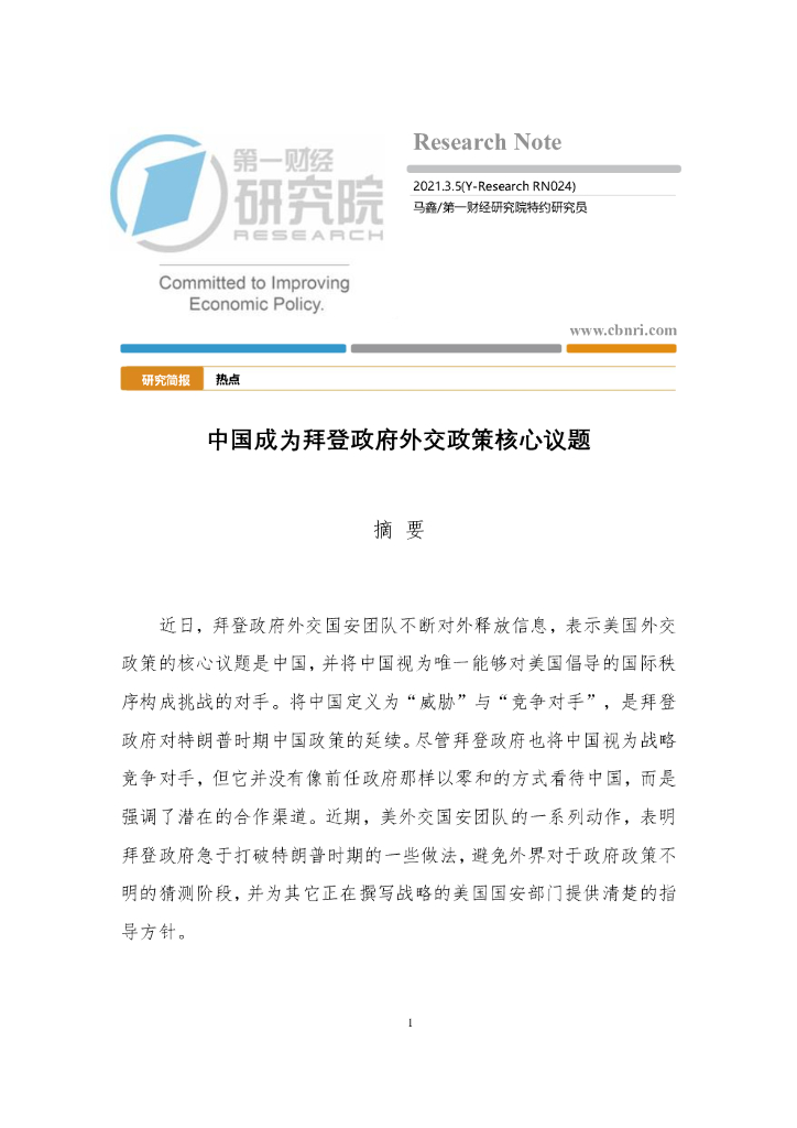 第一财经研究院:中国成为拜登政府外交政策核心议题.pdf
