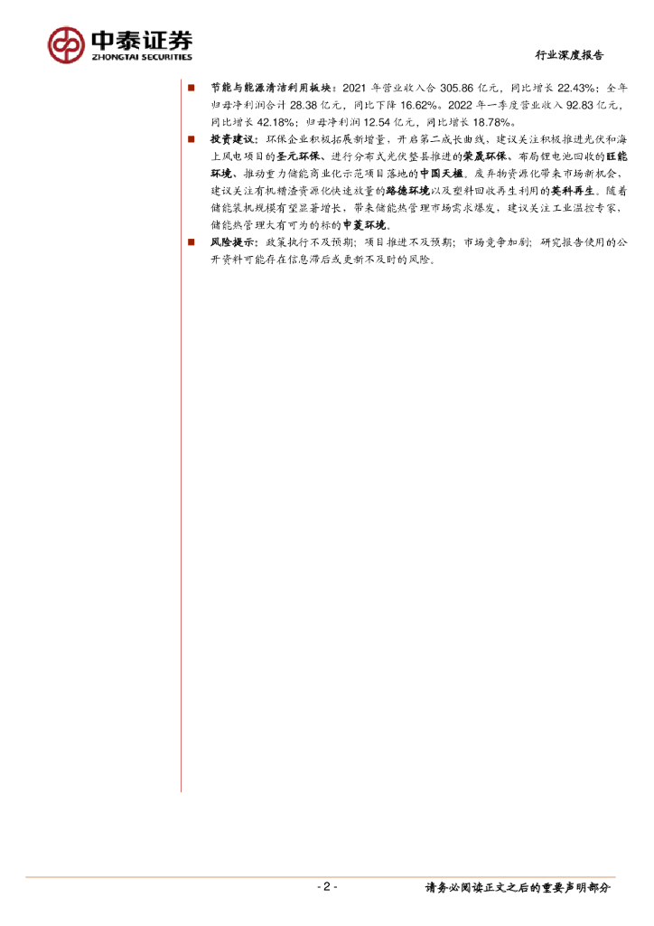 中泰证券:环保板块2021年报及2022年一季报总结:2021稳步增长,期待第二曲线业绩释放.pdf