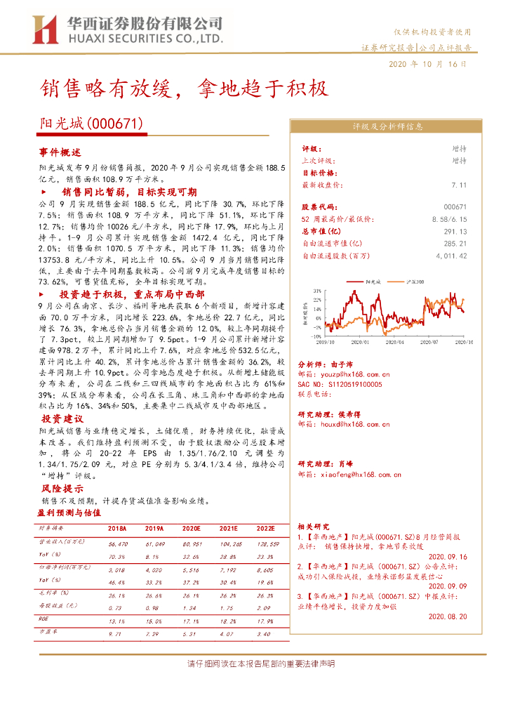 华西证券:阳光城(000671)-销售略有放缓,拿地趋于积极.pdf