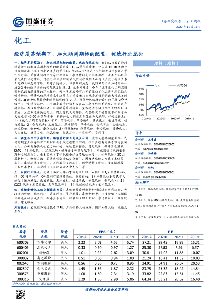 国盛证券:化工行业周报:经济复苏预期下,加大顺周期标的配置,优选行业龙头.pdf