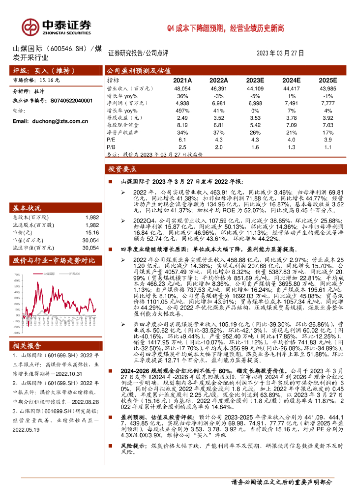 中泰证券:山煤国际(600546)-Q4成本下降超预期,经营业绩历史新高.pdf