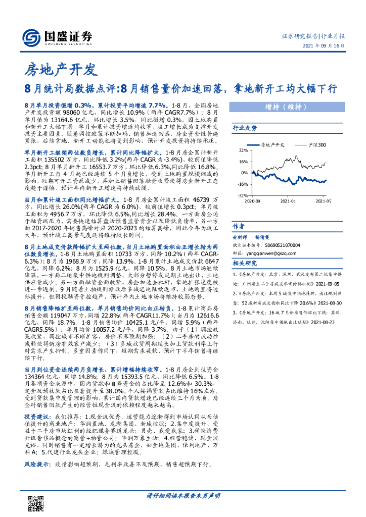 国盛证券:房地产开发:8月统计局数据点评:8月销售量价加速回落,拿地新开工均大幅下行.pdf