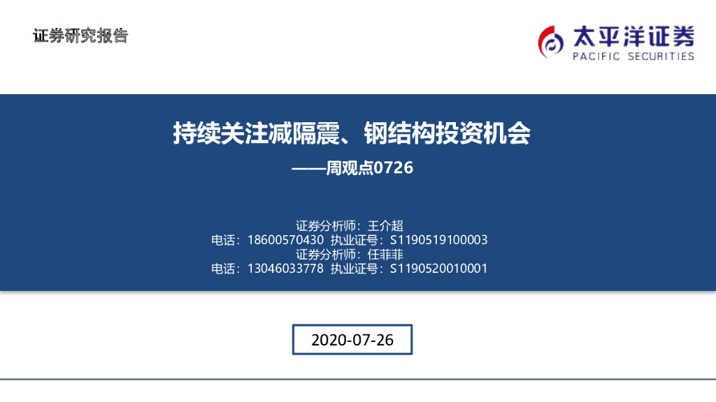 太平洋证券:建筑周观点:持续关注减隔震、钢结构投资机会.pdf
