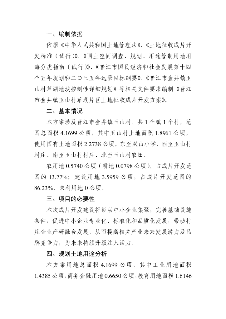 晋江市金井镇玉山村草湖片区土地征收成片开发方案(公示稿).pdf