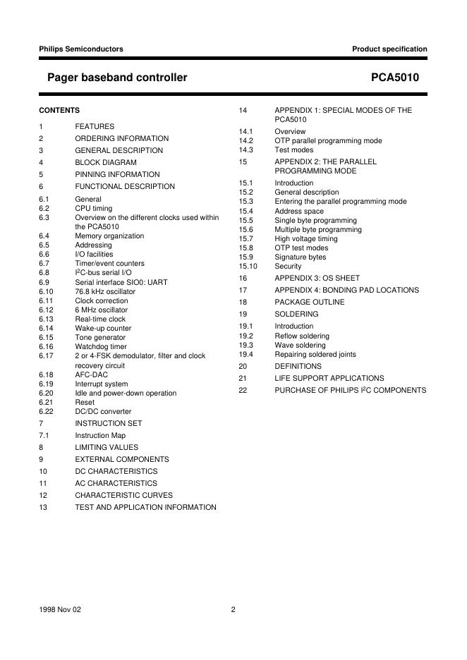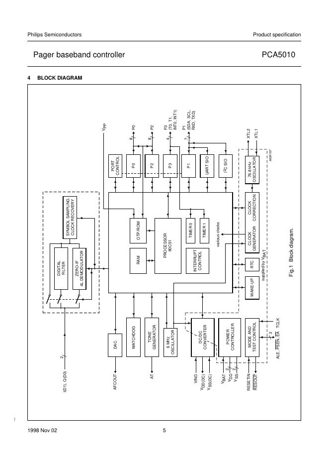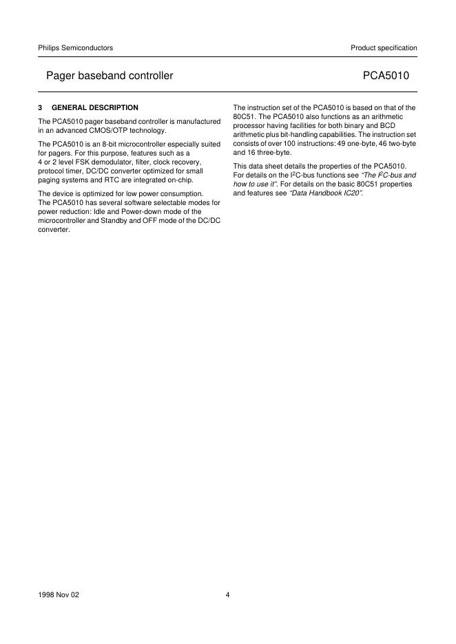 philips PCA5010 Pager baseband controller 数据手册.pdf