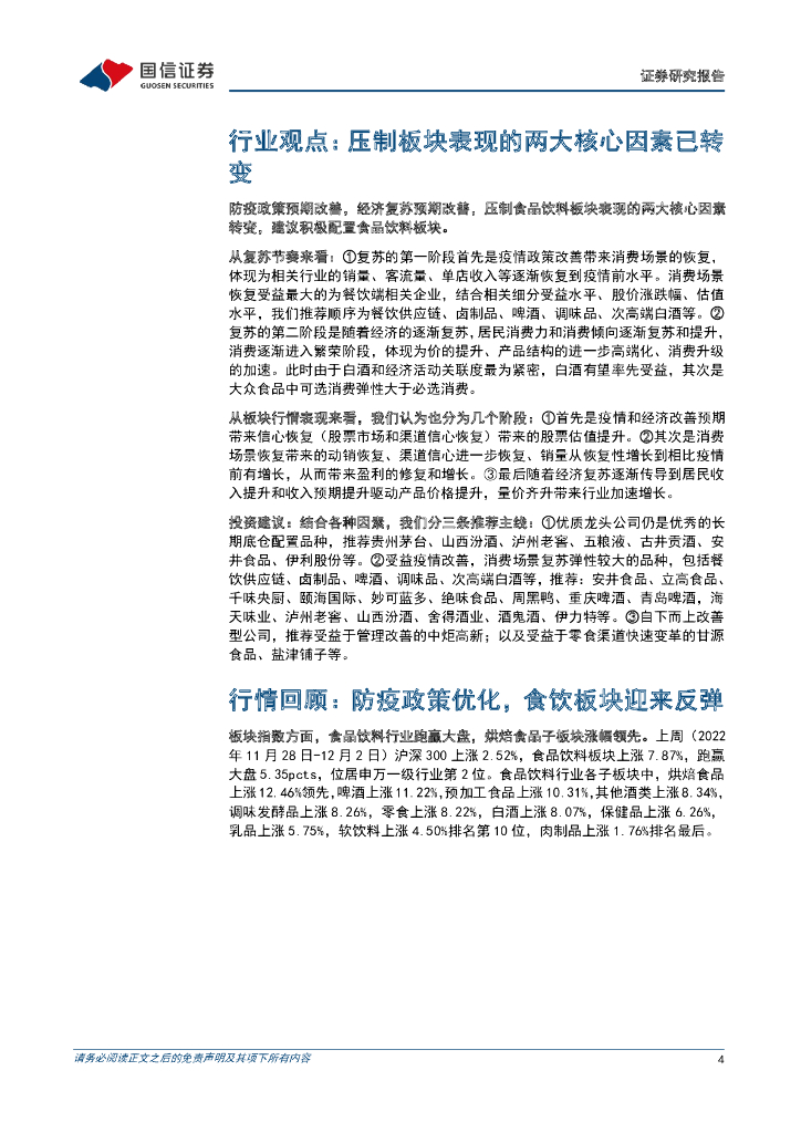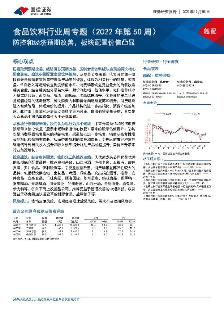 国信证券:食品饮料行业周专题(2022年第50周):防控和经济预期改善,板块配置价值凸显.pdf