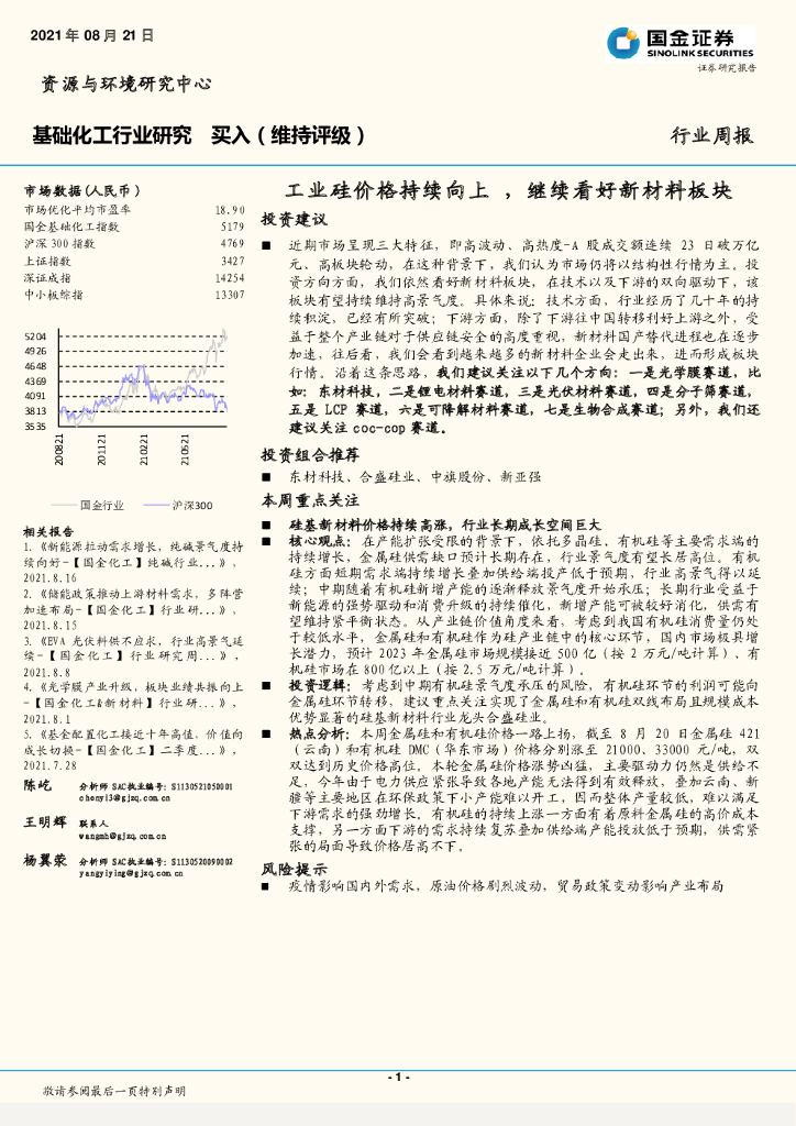 国金证券:基础化工行业研究:工业硅价格持续向上,继续看好新材料板块.pdf