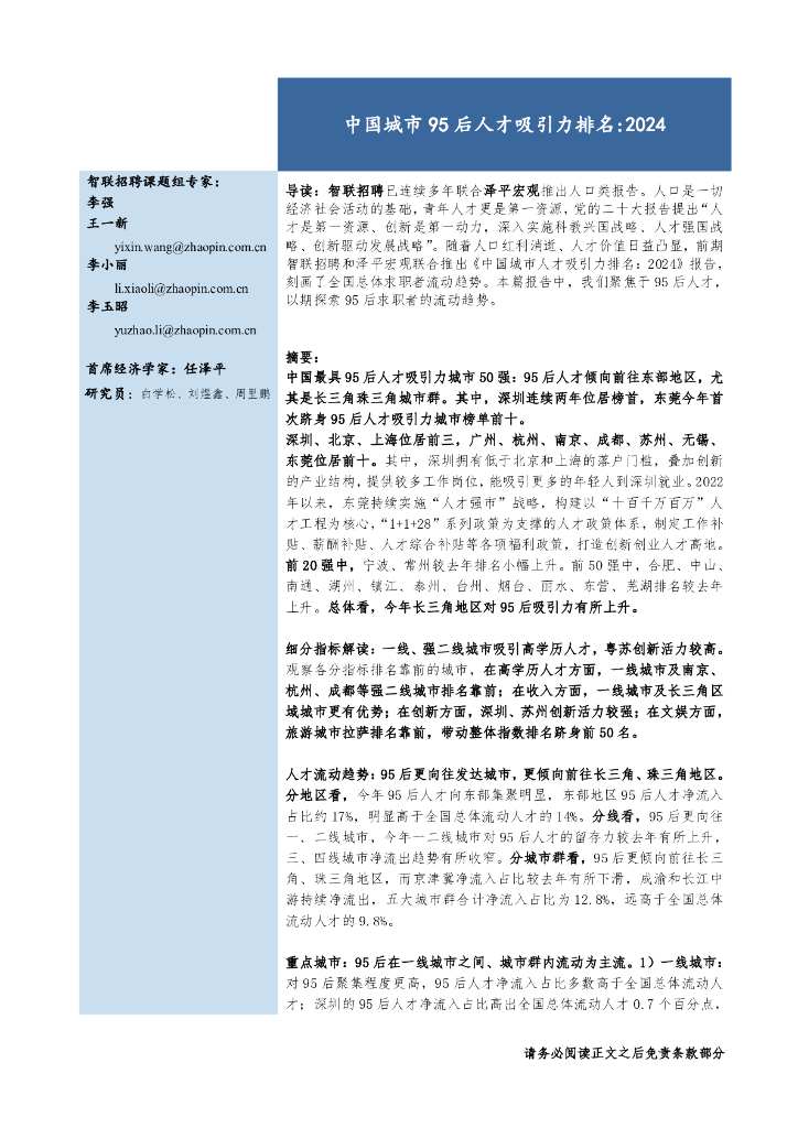智联招聘:中国城市95后人才吸引力排名:2024.pdf
