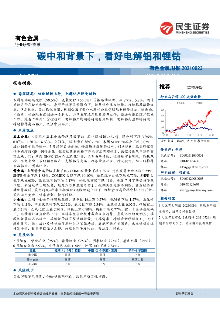 民生证券:有色金属周报:碳中和背景下,看好电解铝和锂钴.pdf