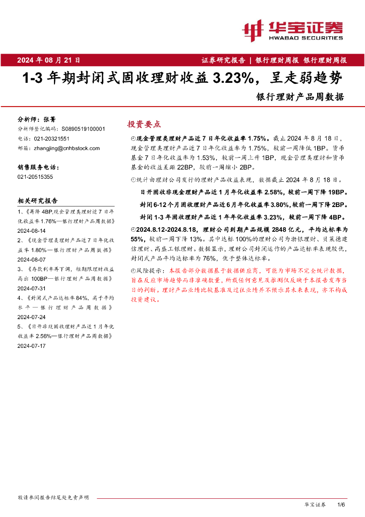 华宝证券:银行理财产品周数据:1-3年期封闭式固收理财收益3.23%,呈走弱趋势.pdf
