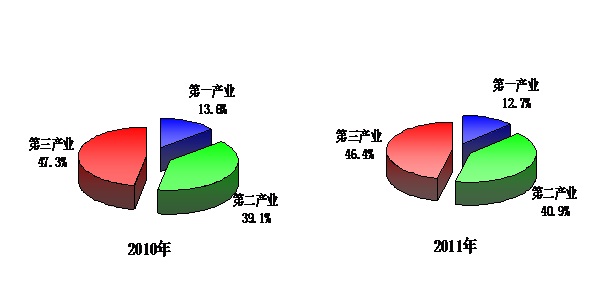 第一产业、第二产业、第三产业增加值占生产总值的比重分别为12.7%、40.9%和46.4%。与上年比,第一产业、第三产业比重均降低0.9个百分点,第二产业比重上升1.8个百分点。