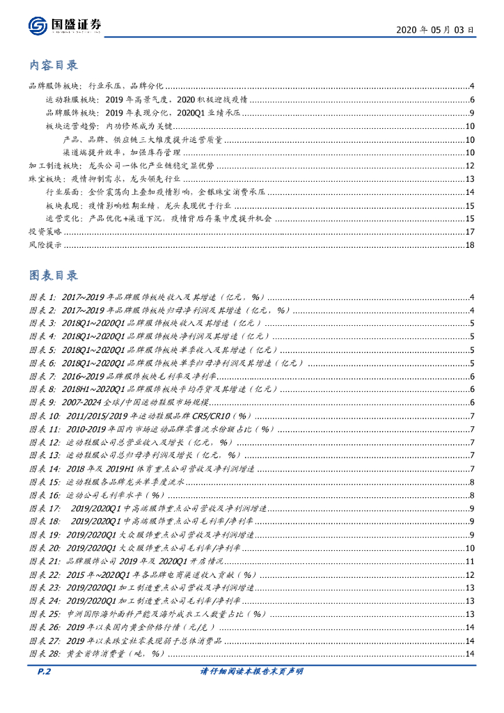 国盛证券:纺织服装行业专题研究:2019运动龙头表现佳,2020“危”、“机”并存.pdf