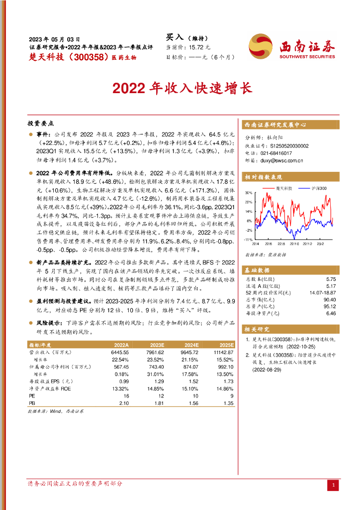 西南证券:楚天科技(300358)-医药生物:2022年收入快速增长.pdf