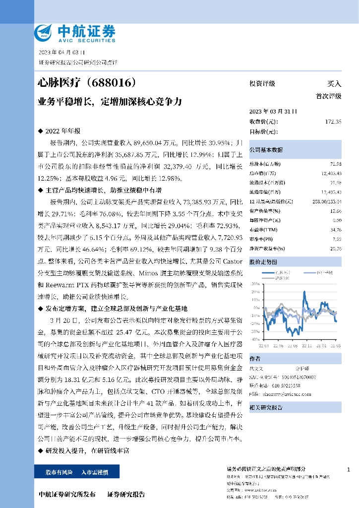 中航证券:心脉医疗(688016)-业务平稳增长,定增加深核心竞争力.pdf