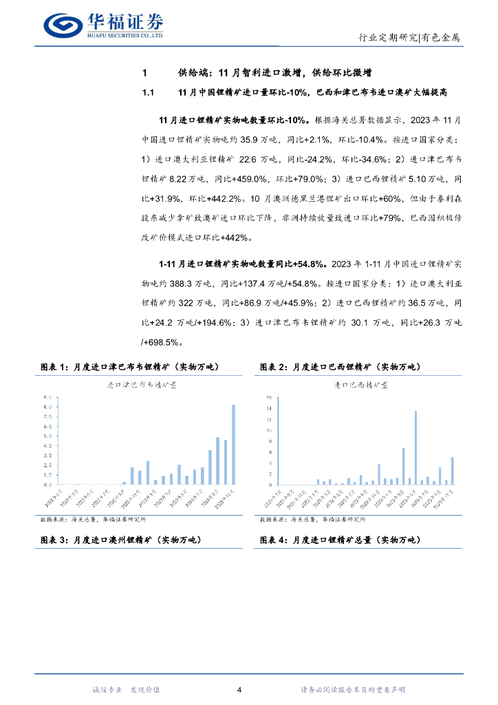 华福证券:锂产业链月度追踪:11月碳酸锂进口激增致锂价承压,锂价不乐观股票不悲观.pdf
