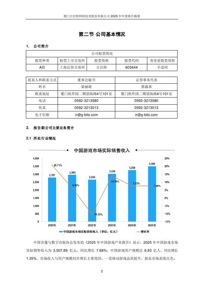 603444-吉比特:厦门吉比特网络技术股份有限公司2025年年度报告摘要.pdf