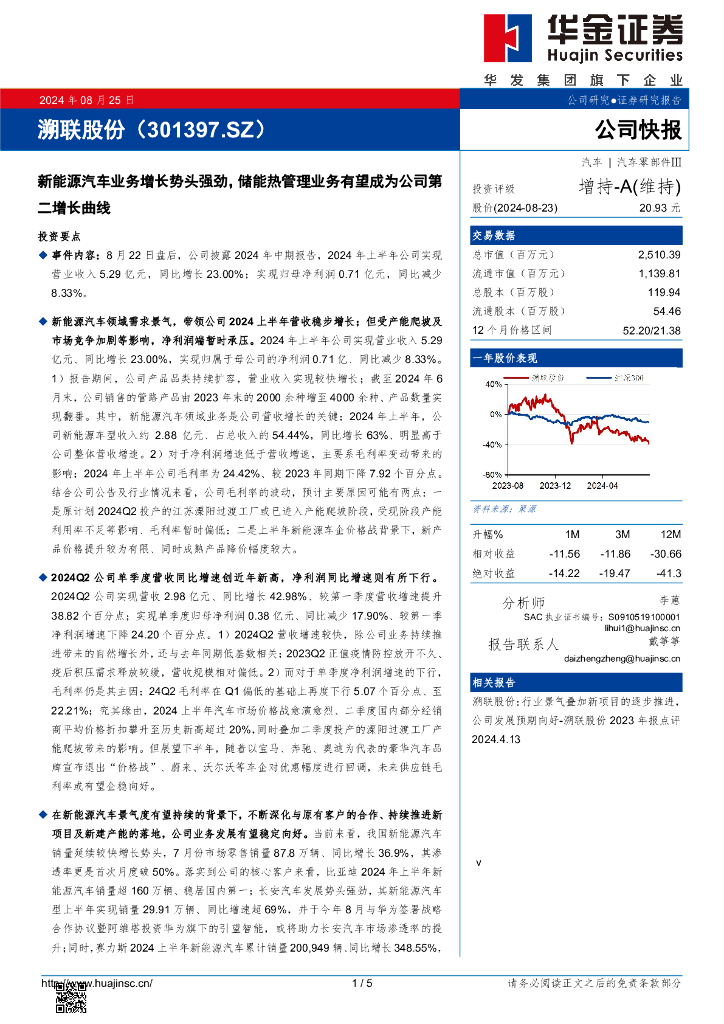 华金证券:溯联股份(301397)-新能源汽车业务增长势头强劲,储能热管理业务有望成为公司第二增长曲线.pdf