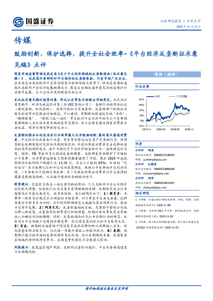 国盛证券:传媒行业:鼓励创新,保护选择,提升全社会效率-《平台经济反垄断征求意见稿》点评.pdf