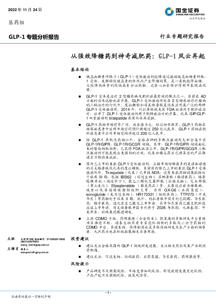 国金证券:GLP-1专题分析报告:从强效降糖药到神奇减肥药:GLP-1风云再起.pdf