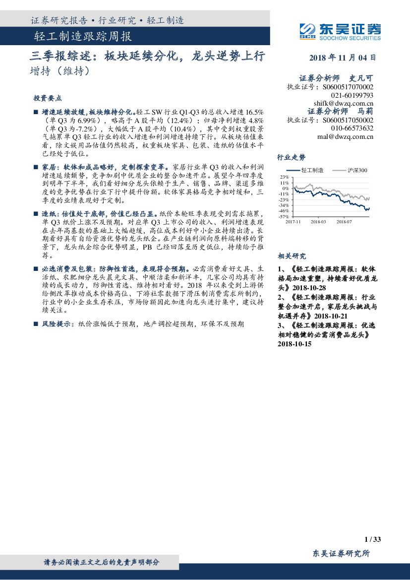 东吴证券:轻工制造跟踪周报:三季报综述:板块延续分化,龙头逆势上行.pdf