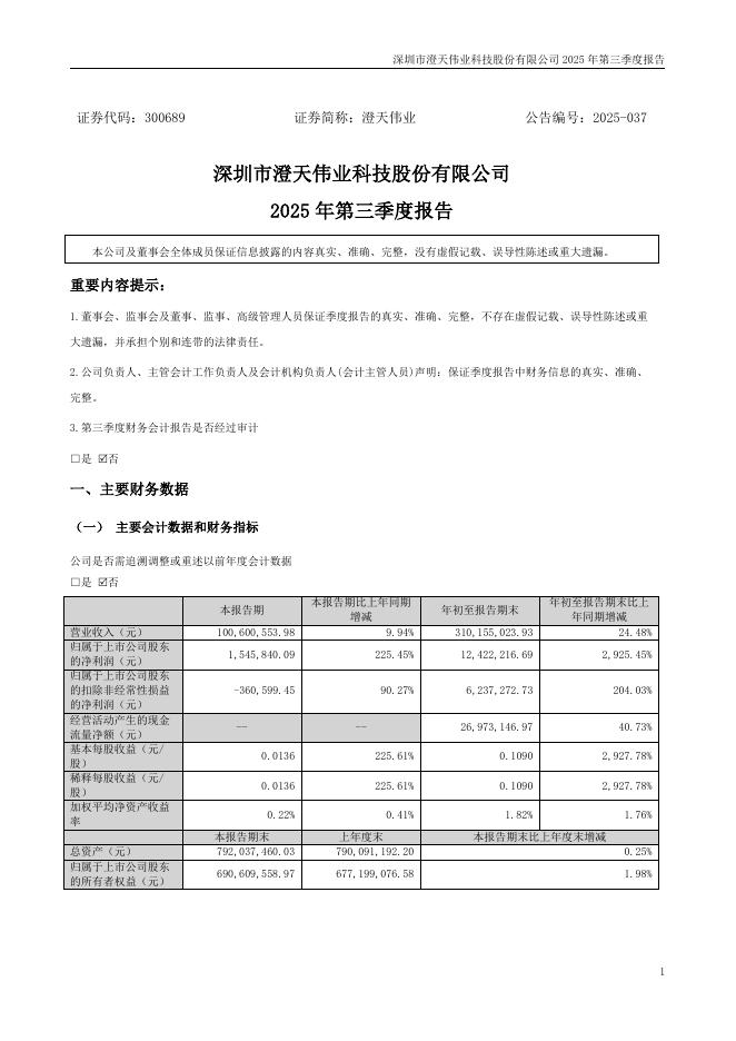 300689-澄天伟业:2025年三季度报告.pdf