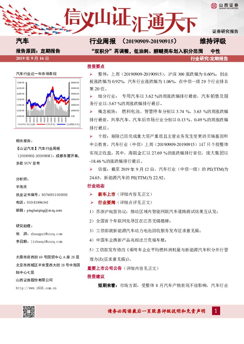 山西证券:汽车行业周报:“双积分”再调整,低油耗、醇醚类车划入积分范围.pdf