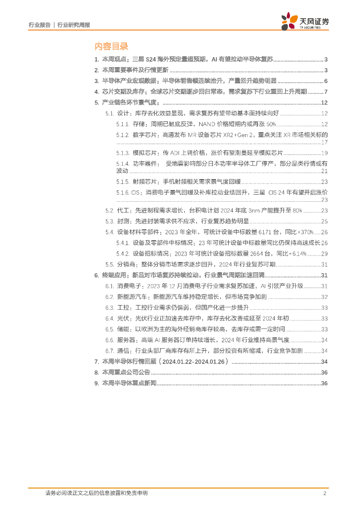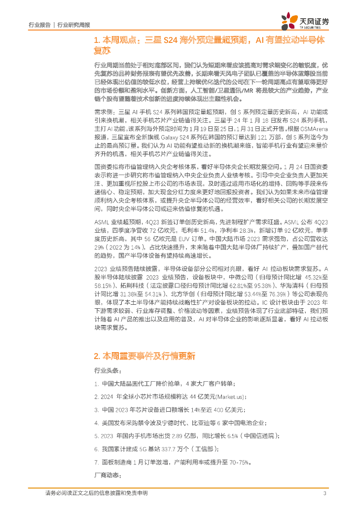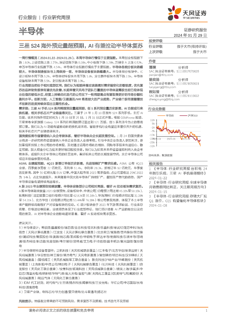天风证券:半导体行业研究周报:三星S24海外预定量超预期,AI有望拉动半导体复苏.pdf