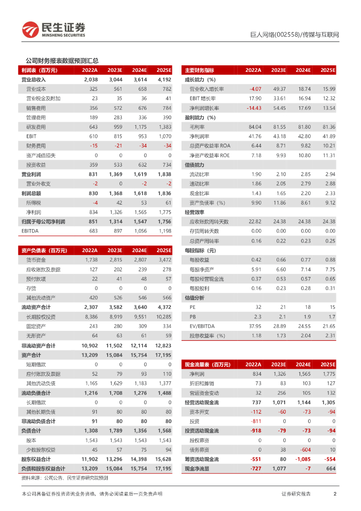 民生证券:巨人网络(002558)-2023年中报点评:《原始征途》增量贡献显著,持续打造长线运营产线.pdf
