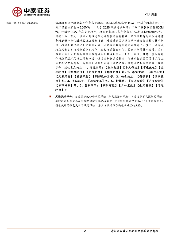 中泰证券:电力设备与新能源行业周报:国内锂电池新品发布加速,漂浮式海上风电有望弯道超车.pdf