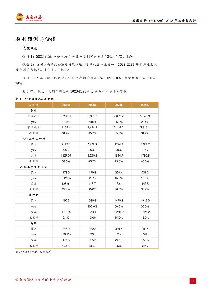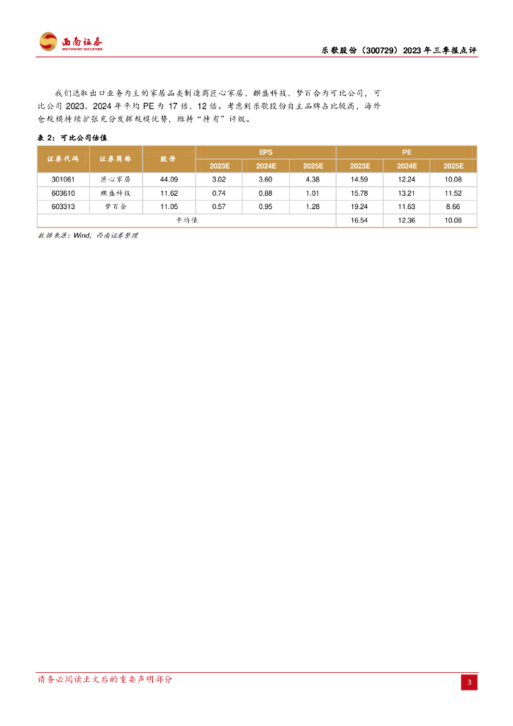 西南证券:乐歌股份(300729)-2023年三季报点评:收入恢复较快增长,经营利润保持稳健.pdf